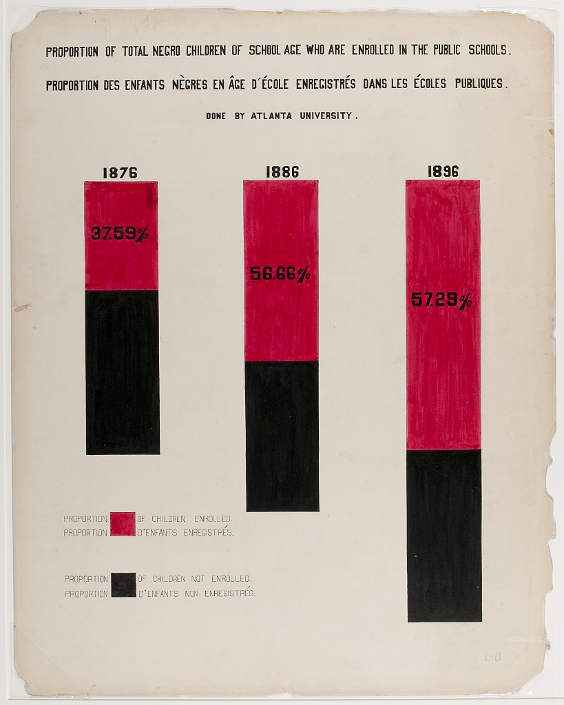 Du Bois’s visualizations were part of the Exposition des Nègres d’Amérique (The Exhibit of American Negroes), an exhibit organized by newspaper editor Thomas Junius Calloway.